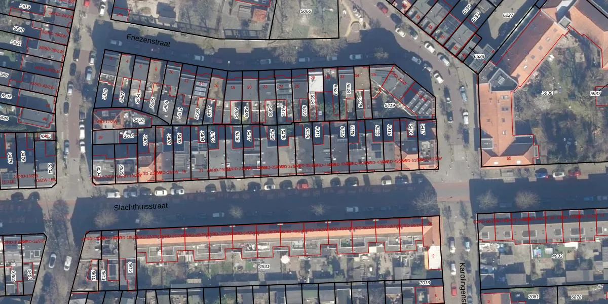 Slachthuisstraat 39-RD is gelegen op kadastraal perceel HLM01E5410. Deze kadastrale aanduiding is uniek en wordt gebruikt door het Kadaster om eigendomsrechten en andere zakelijke rechten vast te leggen. Het perceel maakt onderdeel uit van de kadastrale gemeente Haarlem.