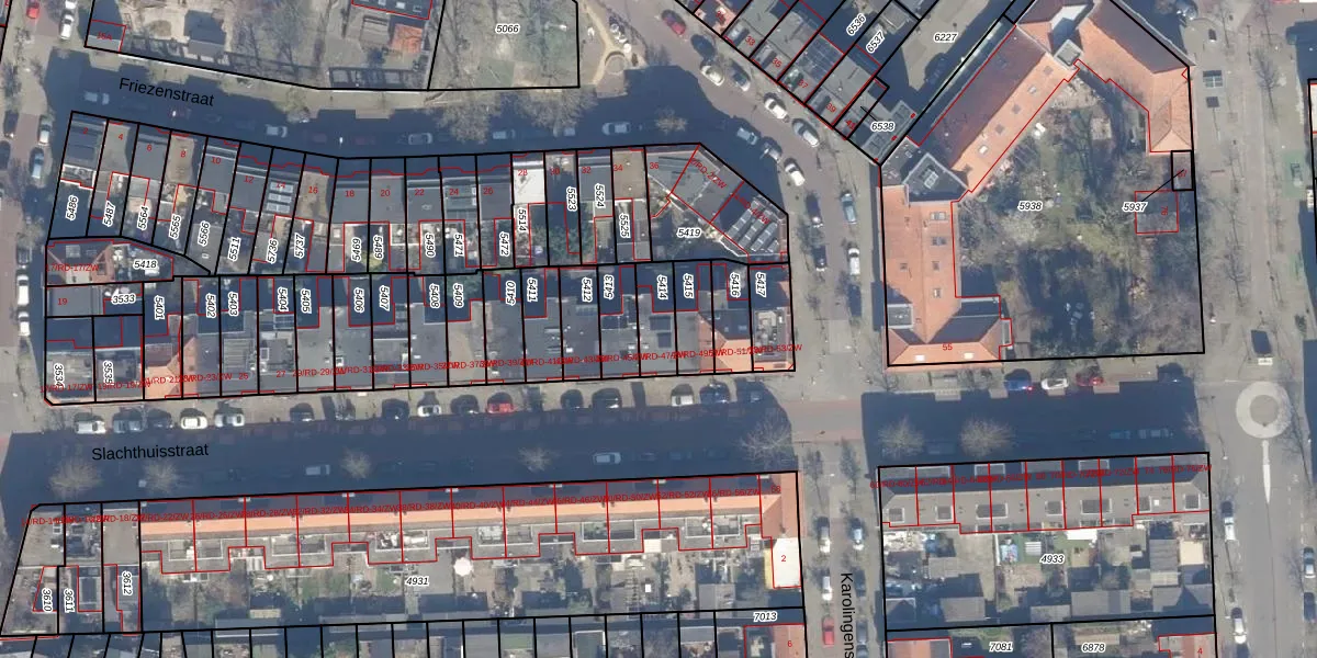 Slachthuisstraat 47-RD is gelegen op kadastraal perceel HLM01E5414. Deze kadastrale aanduiding is uniek en wordt gebruikt door het Kadaster om eigendomsrechten en andere zakelijke rechten vast te leggen. Het perceel maakt onderdeel uit van de kadastrale gemeente Haarlem.