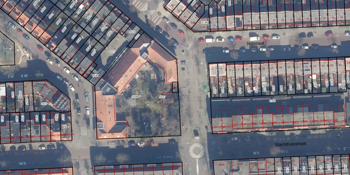 Het perceel waarop Slachthuisstraat 57 staat heeft een oppervlakte van 18 m². Dit is een klein perceel. De perceeloppervlakte wordt geregistreerd door het Kadaster. Gedetailleerde informatie over de maten van dit perceel kunt u vinden in het rapport Kadastrale kaart met maatvoering van Slachthuisstraat 57.