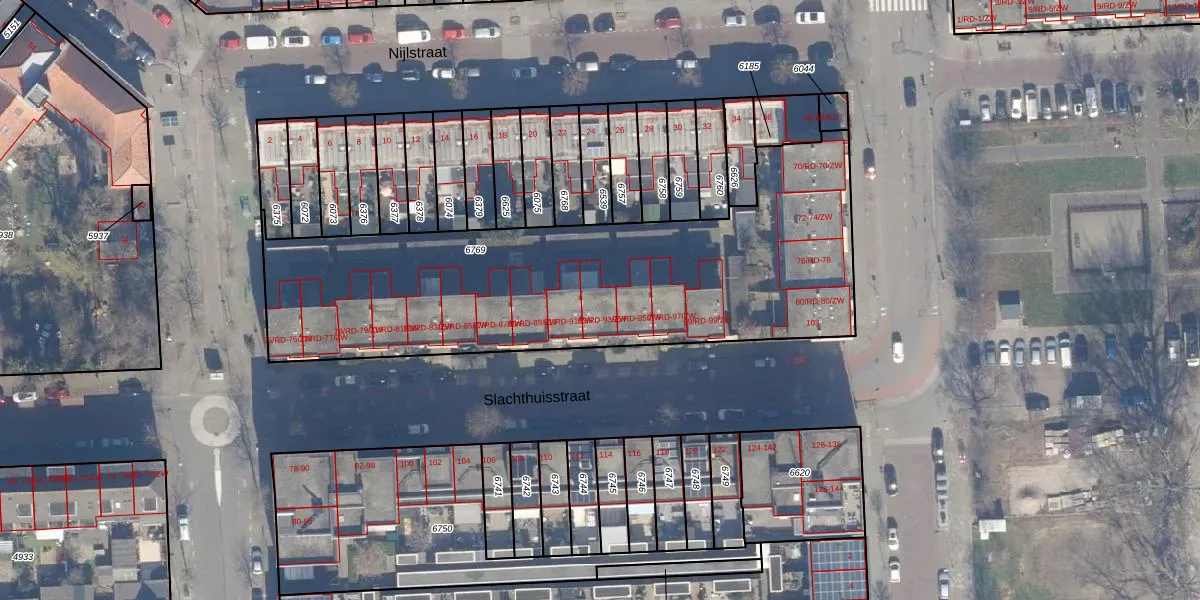 Slachthuisstraat 93-RD is gelegen op kadastraal perceel HLM01E6769. Deze kadastrale aanduiding is uniek en wordt gebruikt door het Kadaster om eigendomsrechten en andere zakelijke rechten vast te leggen. Het perceel maakt onderdeel uit van de kadastrale gemeente Haarlem.