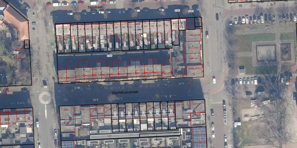 Het perceel waarop Slachthuisstraat 95-ZW staat heeft een oppervlakte van 2230 m². Dit is een zeer groot perceel. De perceeloppervlakte wordt geregistreerd door het Kadaster. Gedetailleerde informatie over de maten van dit perceel kunt u vinden in het rapport Kadastrale kaart met maatvoering van Slachthuisstraat 95-ZW.