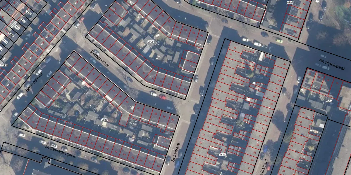 Het perceel waarop Slamatstraat 23 staat heeft een oppervlakte van 2455 m². Dit is een zeer groot perceel. De perceeloppervlakte wordt geregistreerd door het Kadaster. Gedetailleerde informatie over de maten van dit perceel kunt u vinden in het rapport Kadastrale kaart met maatvoering van Slamatstraat 23.