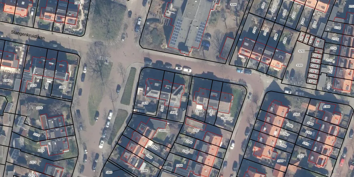 Slangenkruidlaan 14 is gelegen op kadastraal perceel HLM02T1430. Deze kadastrale aanduiding is uniek en wordt gebruikt door het Kadaster om eigendomsrechten en andere zakelijke rechten vast te leggen. Het perceel maakt onderdeel uit van de kadastrale gemeente Haarlem.