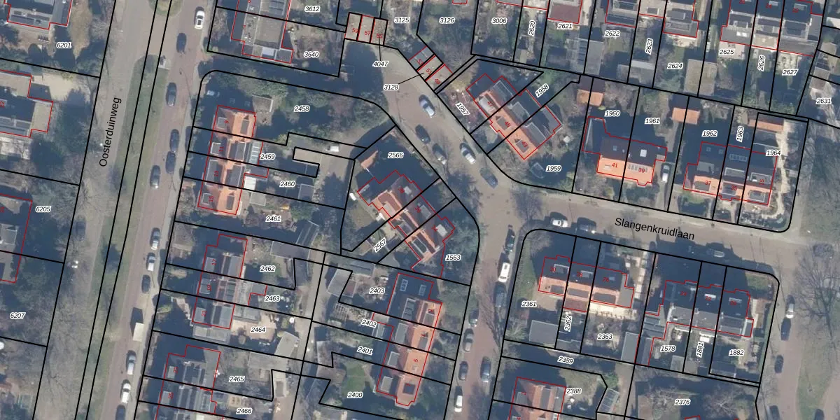 Gebruik de zoekbalk of klik op een perceel voor informatie over de adressen binnen dit perceel.