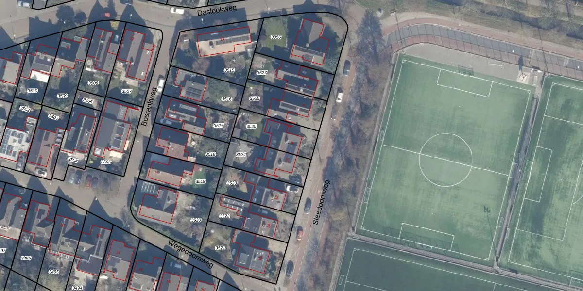 Gebruik de zoekbalk of klik op een perceel voor informatie over de adressen binnen dit perceel.