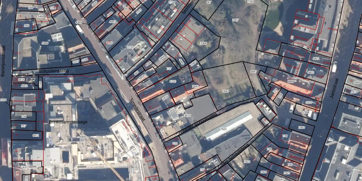 Smedestraat 33 is gelegen op kadastraal perceel HLM01C7642. Deze kadastrale aanduiding is uniek en wordt gebruikt door het Kadaster om eigendomsrechten en andere zakelijke rechten vast te leggen. Het perceel maakt onderdeel uit van de kadastrale gemeente Haarlem.