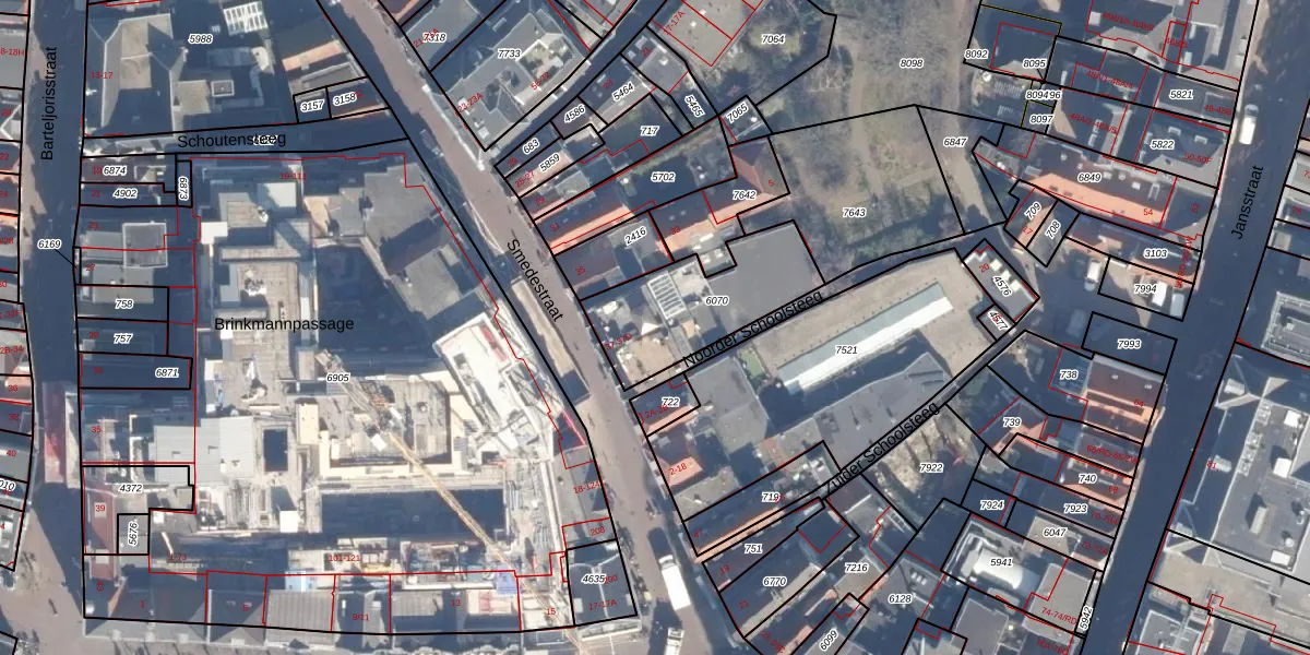 Het perceel waarop Smedestraat 37-C staat heeft een oppervlakte van 448 m². Dit is een groot perceel. De perceeloppervlakte wordt geregistreerd door het Kadaster. Gedetailleerde informatie over de maten van dit perceel kunt u vinden in het rapport Kadastrale kaart met maatvoering van Smedestraat 37-C.