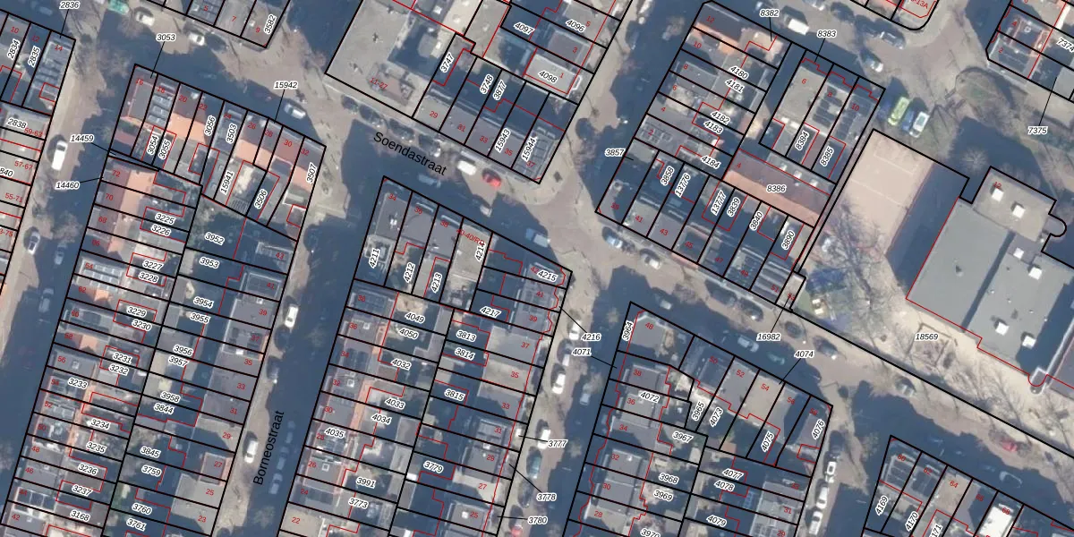 Het perceel waarop Soendastraat 42 staat heeft een oppervlakte van 84 m². Dit is een klein perceel. De perceeloppervlakte wordt geregistreerd door het Kadaster. Gedetailleerde informatie over de maten van dit perceel kunt u vinden in het rapport Kadastrale kaart met maatvoering van Soendastraat 42.