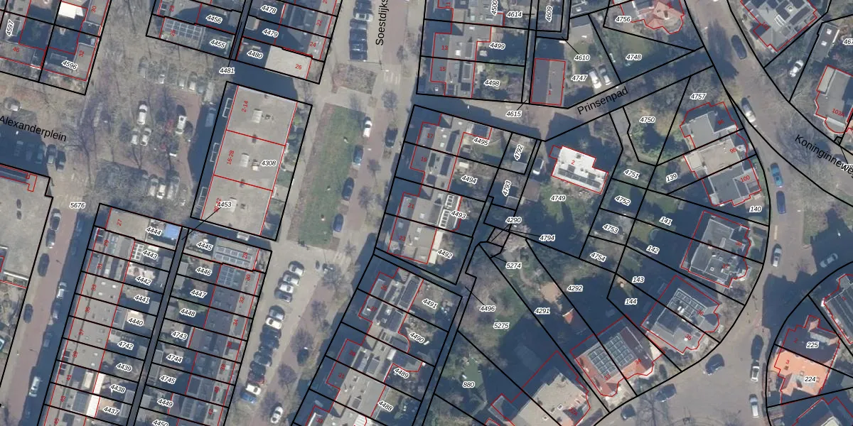 Soestdijkstraat 21 is gelegen op kadastraal perceel HLM01I4493. Deze kadastrale aanduiding is uniek en wordt gebruikt door het Kadaster om eigendomsrechten en andere zakelijke rechten vast te leggen. Het perceel maakt onderdeel uit van de kadastrale gemeente Haarlem.
