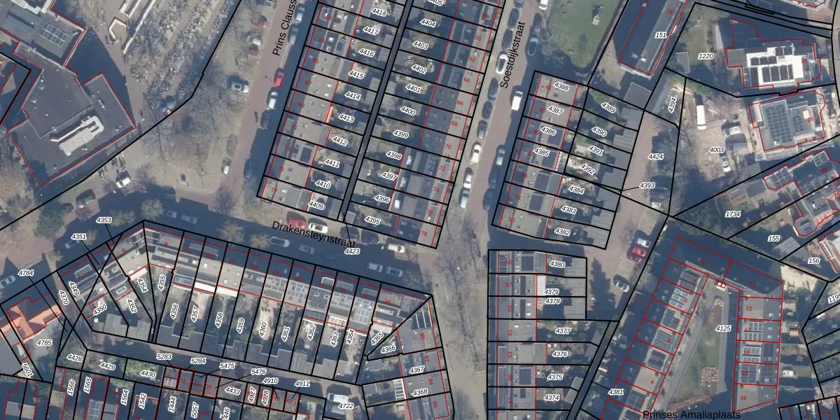Gebruik de zoekbalk of klik op een perceel voor informatie over de adressen binnen dit perceel.