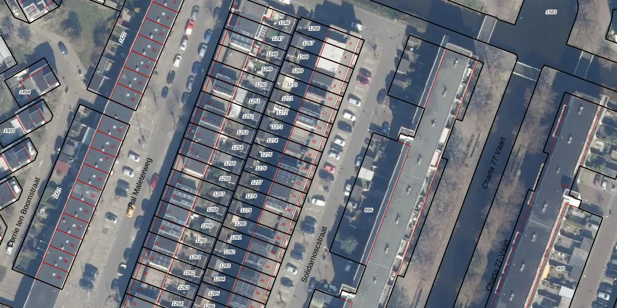 Het perceel waarop Solidarnoscstraat 18 staat heeft een oppervlakte van 107 m². Dit is een middelgroot perceel. De perceeloppervlakte wordt geregistreerd door het Kadaster. Gedetailleerde informatie over de maten van dit perceel kunt u vinden in het rapport Kadastrale kaart met maatvoering van Solidarnoscstraat 18.