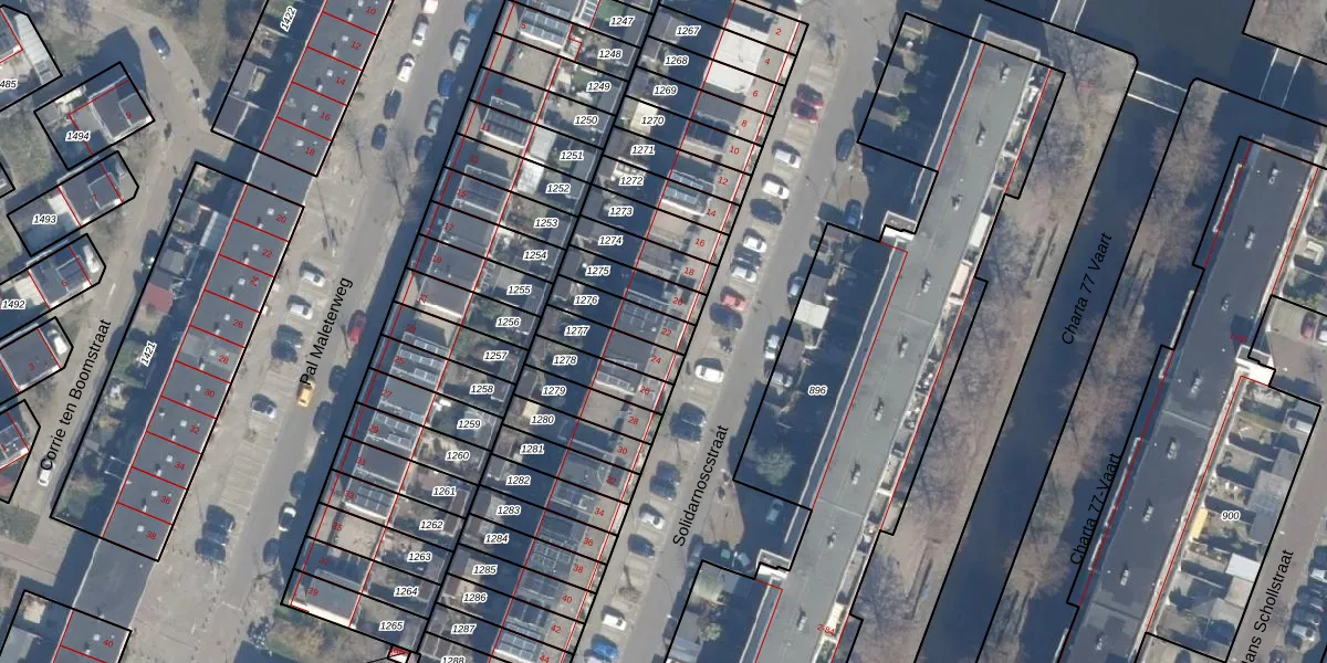 Het perceel waarop Solidarnoscstraat 22 staat heeft een oppervlakte van 106 m². Dit is een middelgroot perceel. De perceeloppervlakte wordt geregistreerd door het Kadaster. Gedetailleerde informatie over de maten van dit perceel kunt u vinden in het rapport Kadastrale kaart met maatvoering van Solidarnoscstraat 22.