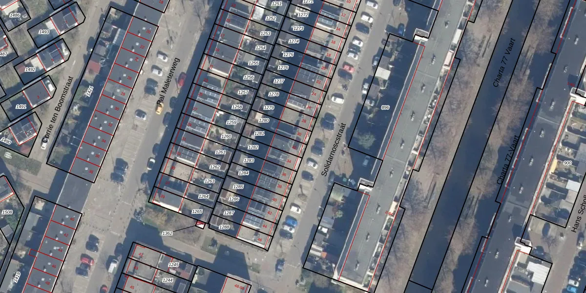 Solidarnoscstraat 32 is gelegen op kadastraal perceel HLM02V1281. Deze kadastrale aanduiding is uniek en wordt gebruikt door het Kadaster om eigendomsrechten en andere zakelijke rechten vast te leggen. Het perceel maakt onderdeel uit van de kadastrale gemeente Haarlem.