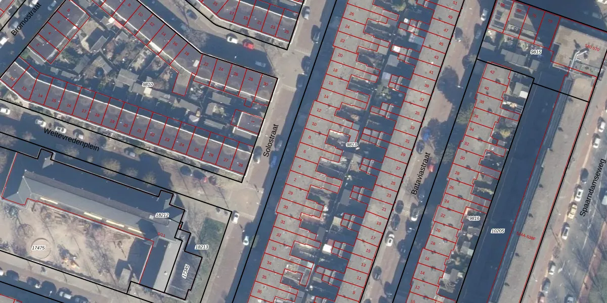 Het perceel waarop Solostraat 6 staat heeft een oppervlakte van 5425 m². Dit is een zeer groot perceel. De perceeloppervlakte wordt geregistreerd door het Kadaster. Gedetailleerde informatie over de maten van dit perceel kunt u vinden in het rapport Kadastrale kaart met maatvoering van Solostraat 6.