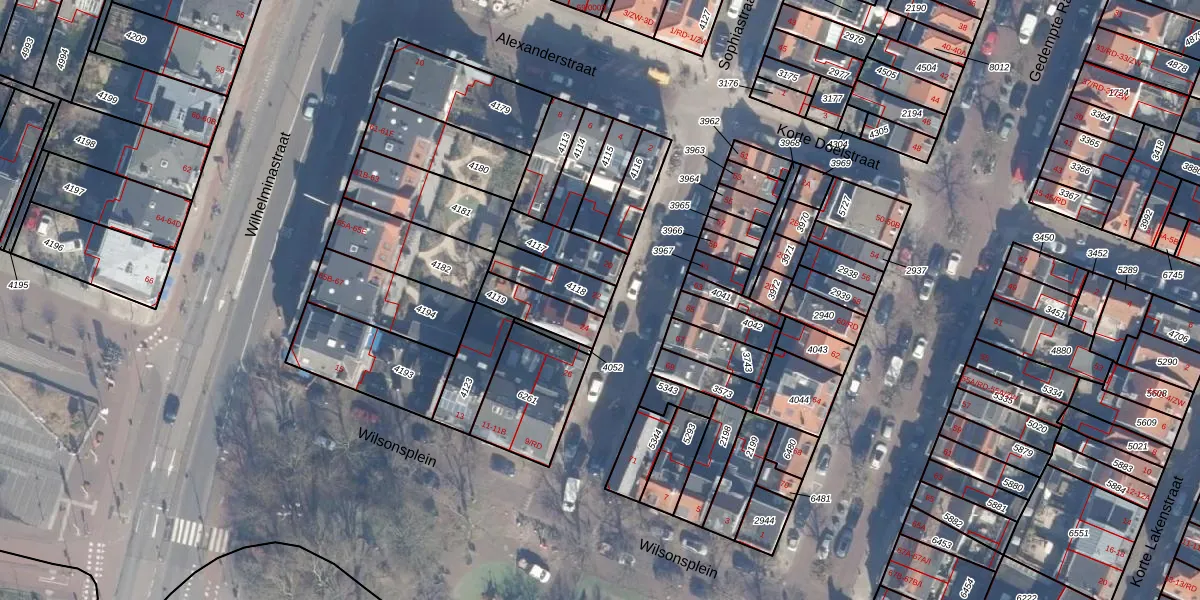 Gebruik de zoekbalk of klik op een perceel voor informatie over de adressen binnen dit perceel.