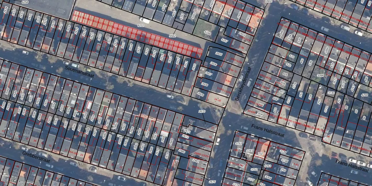 Het perceel waarop Soutmanstraat 1 staat heeft een oppervlakte van 108 m². Dit is een middelgroot perceel. De perceeloppervlakte wordt geregistreerd door het Kadaster. Gedetailleerde informatie over de maten van dit perceel kunt u vinden in het rapport Kadastrale kaart met maatvoering van Soutmanstraat 1.