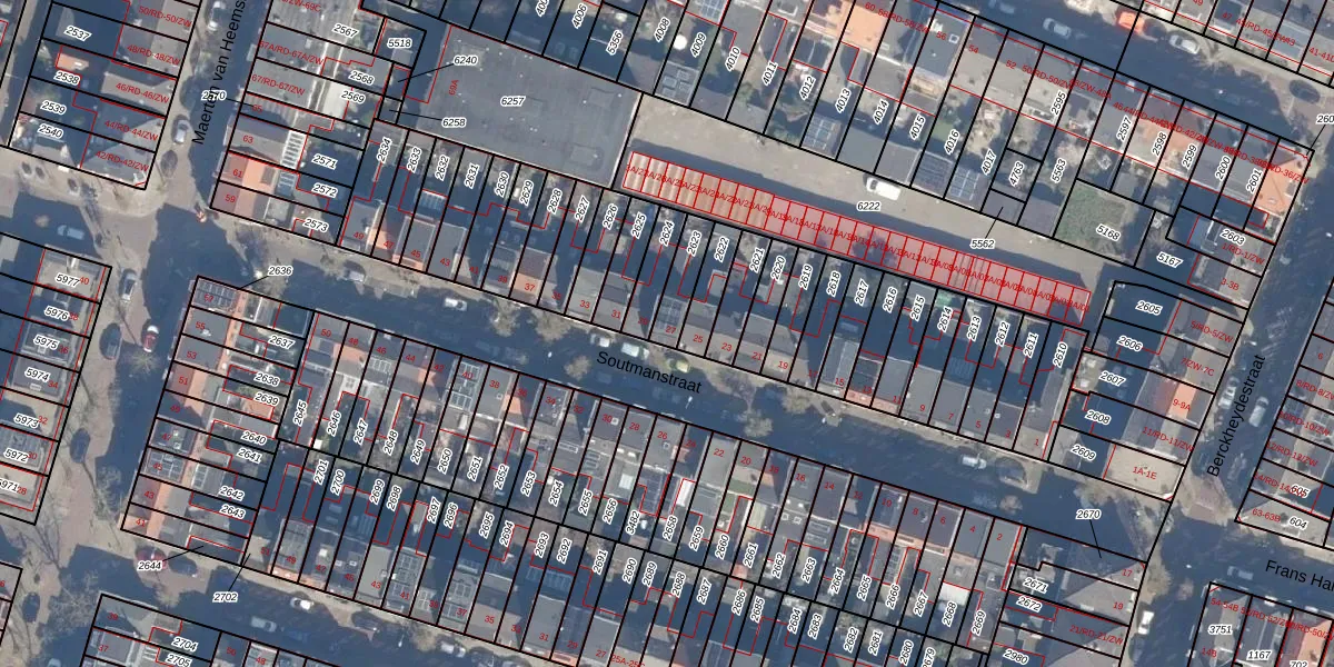 Het perceel waarop Soutmanstraat 27 staat heeft een oppervlakte van 88 m². Dit is een klein perceel. De perceeloppervlakte wordt geregistreerd door het Kadaster. Gedetailleerde informatie over de maten van dit perceel kunt u vinden in het rapport Kadastrale kaart met maatvoering van Soutmanstraat 27.