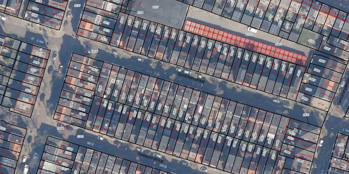 Het perceel waarop Soutmanstraat 32 staat heeft een oppervlakte van 88 m². Dit is een klein perceel. De perceeloppervlakte wordt geregistreerd door het Kadaster. Gedetailleerde informatie over de maten van dit perceel kunt u vinden in het rapport Kadastrale kaart met maatvoering van Soutmanstraat 32.
