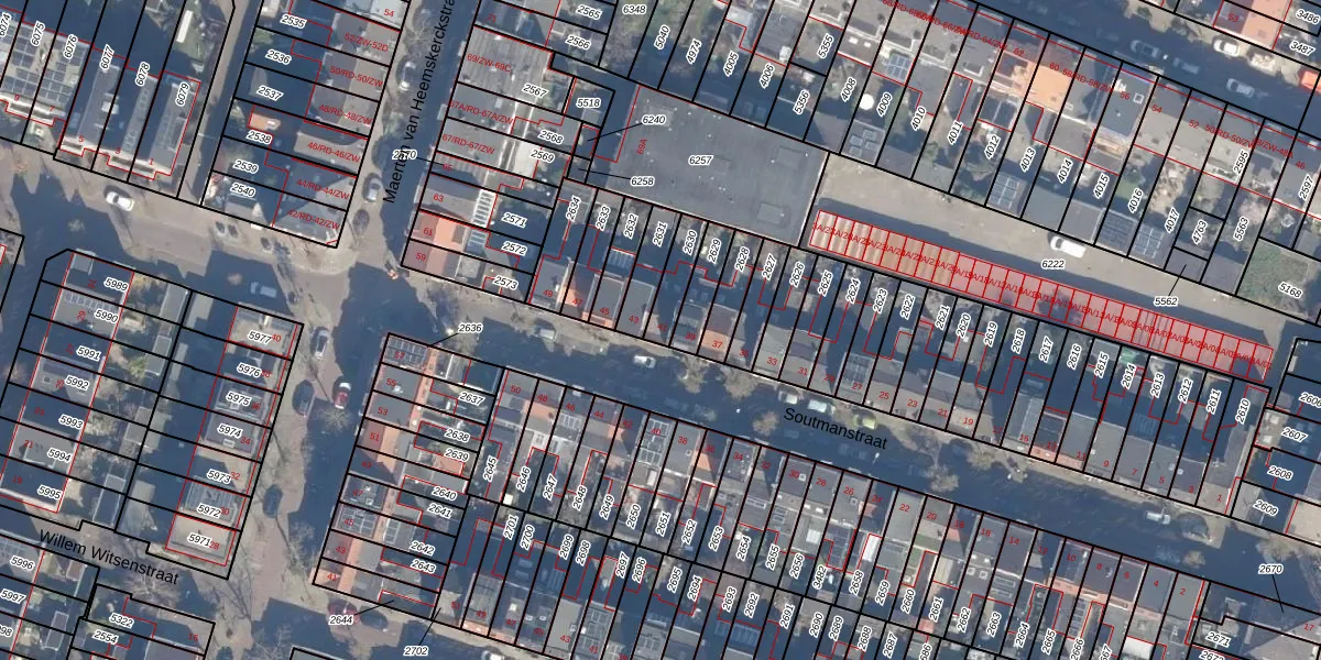 Het perceel waarop Soutmanstraat 41 staat heeft een oppervlakte van 88 m². Dit is een klein perceel. De perceeloppervlakte wordt geregistreerd door het Kadaster. Gedetailleerde informatie over de maten van dit perceel kunt u vinden in het rapport Kadastrale kaart met maatvoering van Soutmanstraat 41.