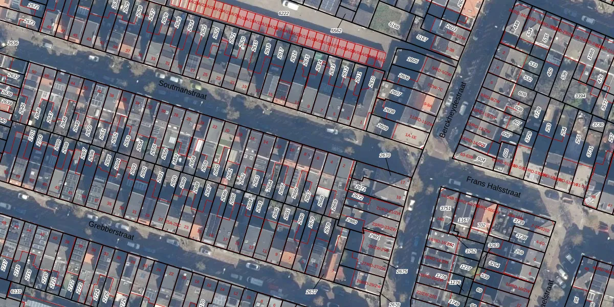 Het perceel waarop Soutmanstraat 8 staat heeft een oppervlakte van 88 m². Dit is een klein perceel. De perceeloppervlakte wordt geregistreerd door het Kadaster. Gedetailleerde informatie over de maten van dit perceel kunt u vinden in het rapport Kadastrale kaart met maatvoering van Soutmanstraat 8.