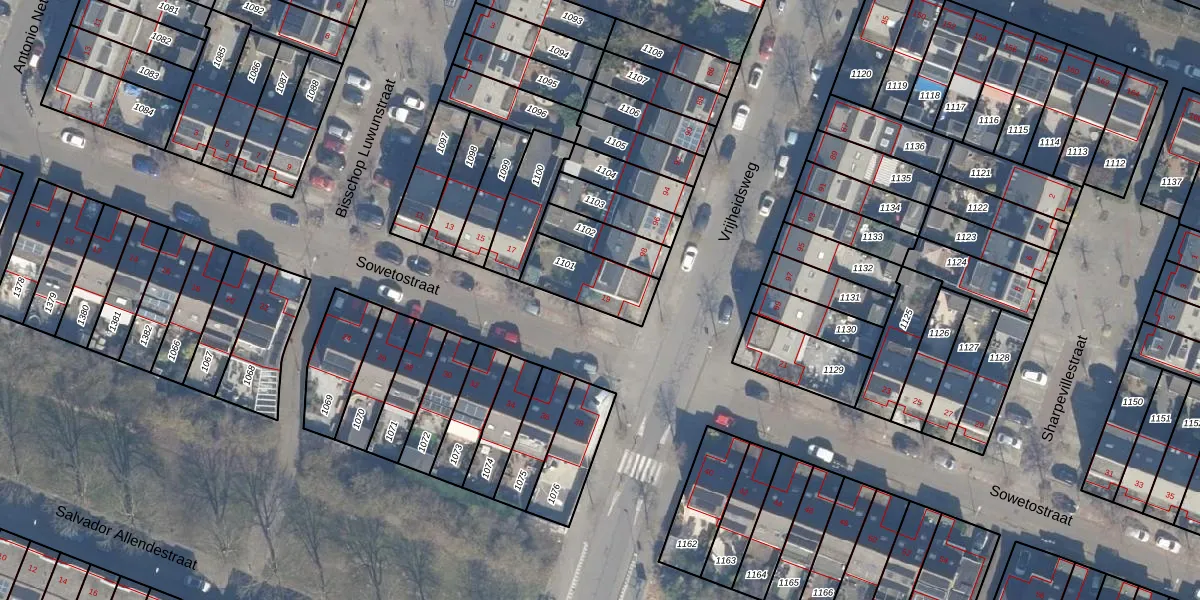 Sowetostraat 19 is gelegen op kadastraal perceel HLM02V1101. Deze kadastrale aanduiding is uniek en wordt gebruikt door het Kadaster om eigendomsrechten en andere zakelijke rechten vast te leggen. Het perceel maakt onderdeel uit van de kadastrale gemeente Haarlem.