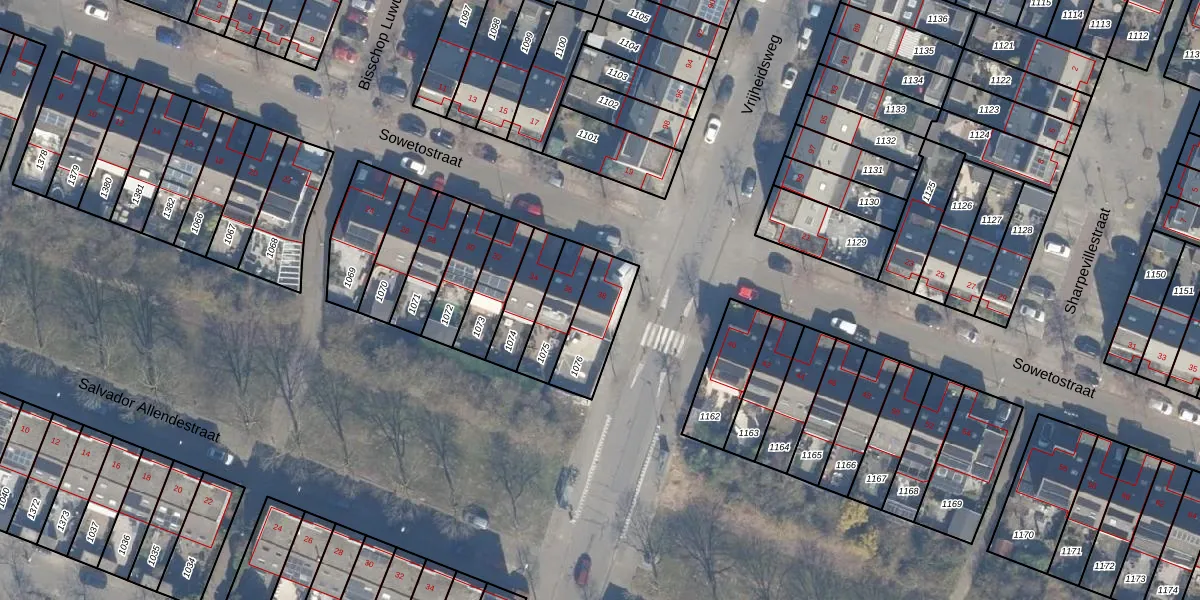 Gebruik de zoekbalk of klik op een perceel voor informatie over de adressen binnen dit perceel.