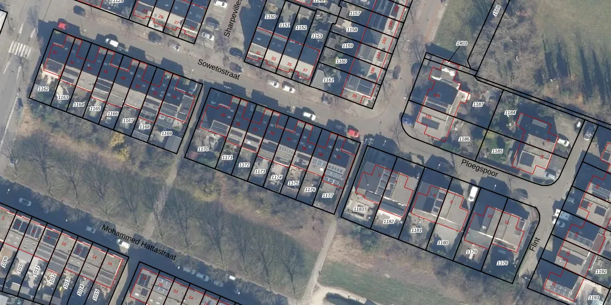 Sowetostraat 66 is gelegen op kadastraal perceel HLM02V1175. Deze kadastrale aanduiding is uniek en wordt gebruikt door het Kadaster om eigendomsrechten en andere zakelijke rechten vast te leggen. Het perceel maakt onderdeel uit van de kadastrale gemeente Haarlem.