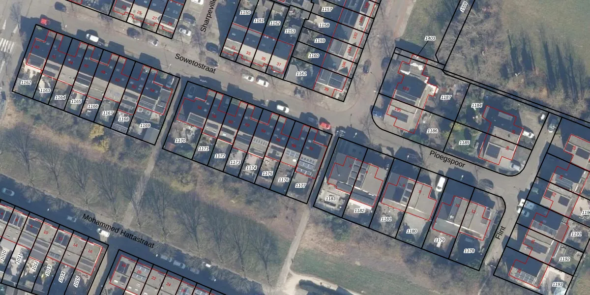 Sowetostraat 68 is gelegen op kadastraal perceel HLM02V1176. Deze kadastrale aanduiding is uniek en wordt gebruikt door het Kadaster om eigendomsrechten en andere zakelijke rechten vast te leggen. Het perceel maakt onderdeel uit van de kadastrale gemeente Haarlem.
