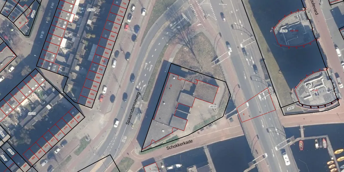 Spaarndamseweg 13 is gelegen op kadastraal perceel STN01B18030. Deze kadastrale aanduiding is uniek en wordt gebruikt door het Kadaster om eigendomsrechten en andere zakelijke rechten vast te leggen. Het perceel maakt onderdeel uit van de kadastrale gemeente Schoten.