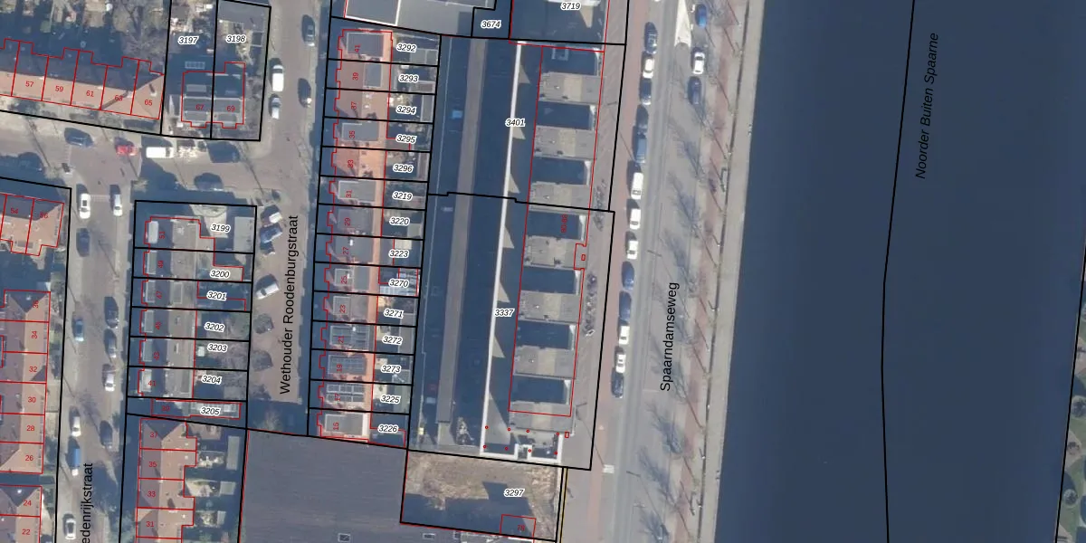 Het perceel waarop Spaarndamseweg 80-S staat heeft een oppervlakte van 1608 m². Dit is een zeer groot perceel. De perceeloppervlakte wordt geregistreerd door het Kadaster. Gedetailleerde informatie over de maten van dit perceel kunt u vinden in het rapport Kadastrale kaart met maatvoering van Spaarndamseweg 80-S.