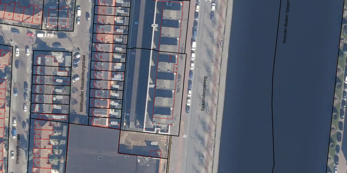 Spaarndamseweg 82 is gelegen op kadastraal perceel HLM01G3337. Deze kadastrale aanduiding is uniek en wordt gebruikt door het Kadaster om eigendomsrechten en andere zakelijke rechten vast te leggen. Het perceel maakt onderdeel uit van de kadastrale gemeente Haarlem.