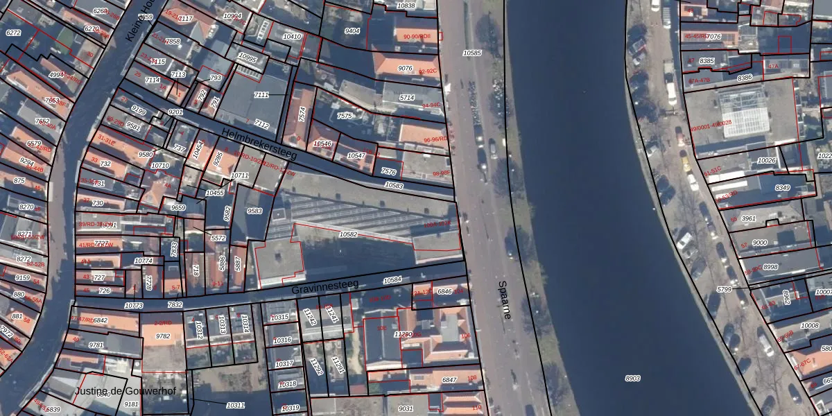 Spaarne 100-B is gelegen op kadastraal perceel HLM01D10582. Deze kadastrale aanduiding is uniek en wordt gebruikt door het Kadaster om eigendomsrechten en andere zakelijke rechten vast te leggen. Het perceel maakt onderdeel uit van de kadastrale gemeente Haarlem.