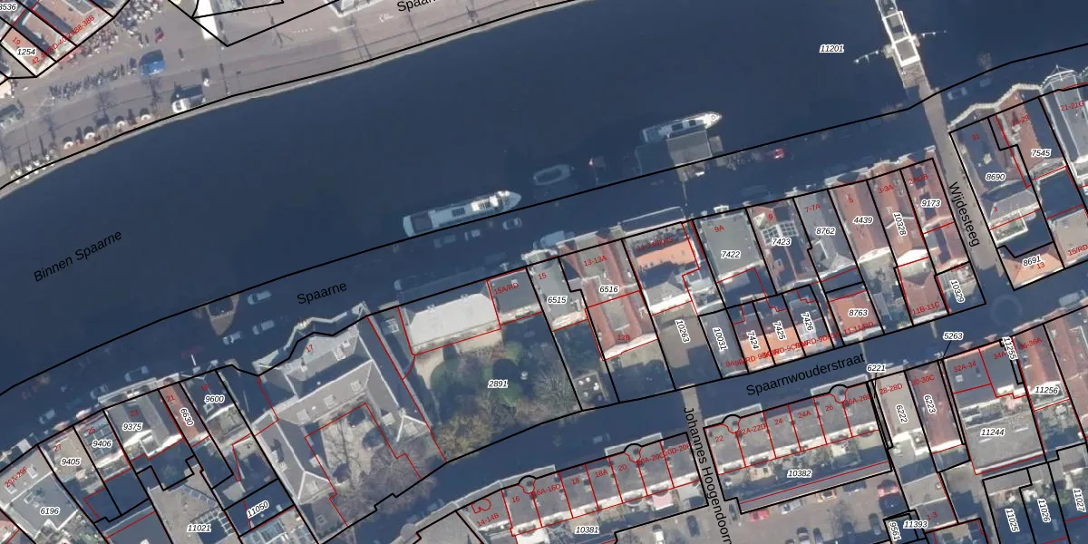 Spaarne 15 is gelegen op kadastraal perceel HLM01D6515. Deze kadastrale aanduiding is uniek en wordt gebruikt door het Kadaster om eigendomsrechten en andere zakelijke rechten vast te leggen. Het perceel maakt onderdeel uit van de kadastrale gemeente Haarlem.