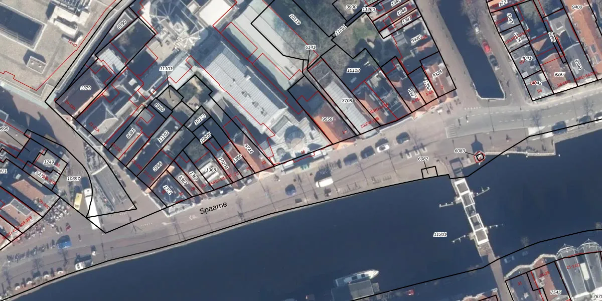 Spaarne 16 is gelegen op kadastraal perceel HLM01D11104. Deze kadastrale aanduiding is uniek en wordt gebruikt door het Kadaster om eigendomsrechten en andere zakelijke rechten vast te leggen. Het perceel maakt onderdeel uit van de kadastrale gemeente Haarlem.