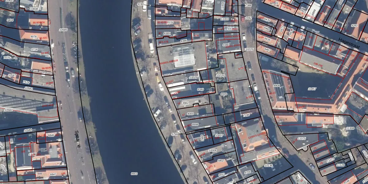 Spaarne 53-RD is gelegen op kadastraal perceel HLM01D8349. Deze kadastrale aanduiding is uniek en wordt gebruikt door het Kadaster om eigendomsrechten en andere zakelijke rechten vast te leggen. Het perceel maakt onderdeel uit van de kadastrale gemeente Haarlem.
