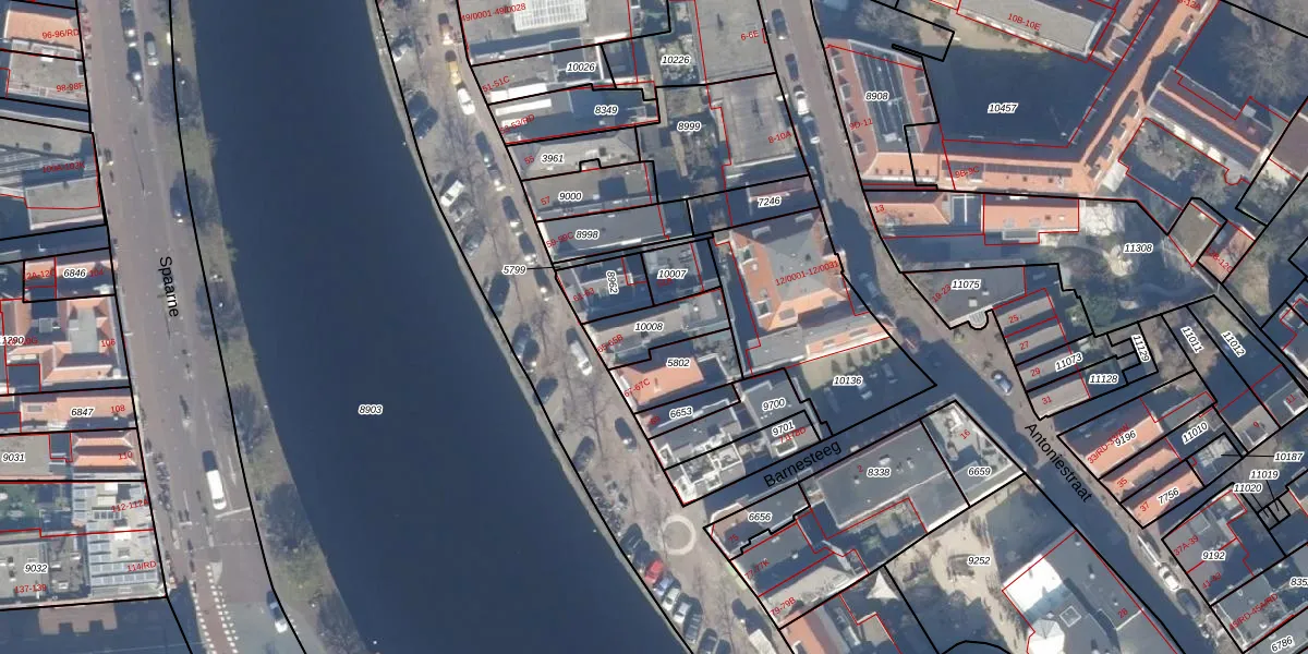 Spaarne 65-B is gelegen op kadastraal perceel HLM01D10008. Deze kadastrale aanduiding is uniek en wordt gebruikt door het Kadaster om eigendomsrechten en andere zakelijke rechten vast te leggen. Het perceel maakt onderdeel uit van de kadastrale gemeente Haarlem.