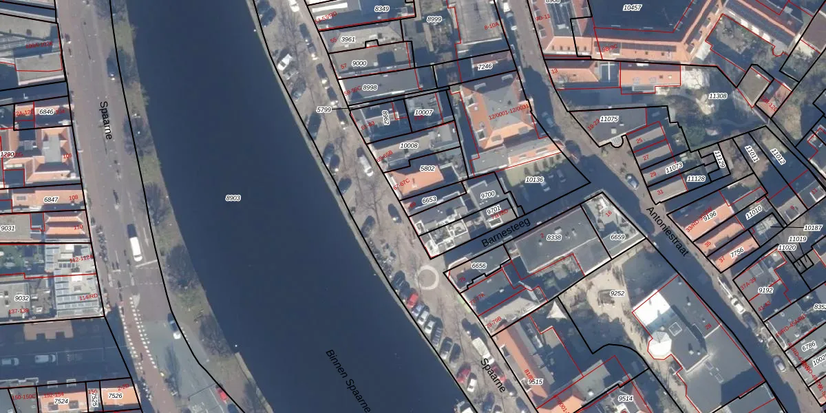 Het perceel waarop Spaarne 69 staat heeft een oppervlakte van 46 m². Dit is een klein perceel. De perceeloppervlakte wordt geregistreerd door het Kadaster. Gedetailleerde informatie over de maten van dit perceel kunt u vinden in het rapport Kadastrale kaart met maatvoering van Spaarne 69.