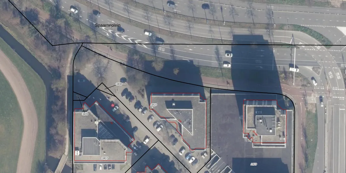 Het perceel waarop Spaarneplein 104 staat heeft een oppervlakte van 2609 m². Dit is een zeer groot perceel. De perceeloppervlakte wordt geregistreerd door het Kadaster. Gedetailleerde informatie over de maten van dit perceel kunt u vinden in het rapport Kadastrale kaart met maatvoering van Spaarneplein 104.