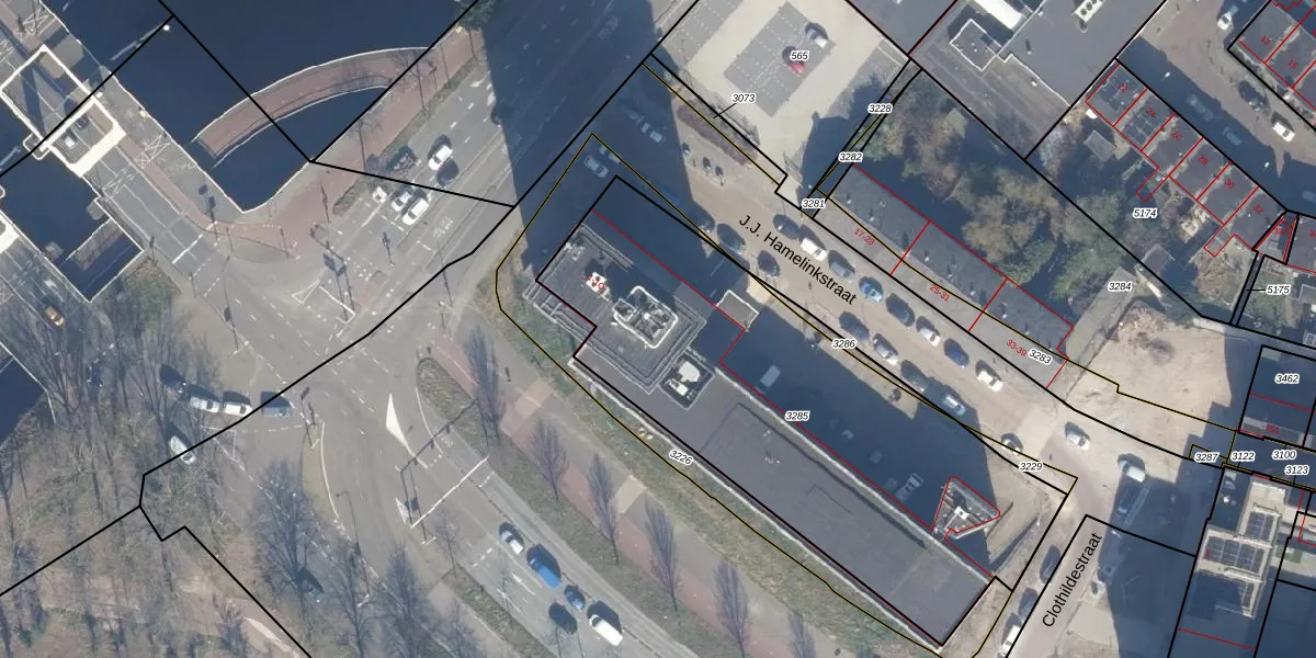 Het adres is gelegen op perceel 3285 in de sectie Q en de kadastrale gemeente Haarlem. De kadastrale aanduiding is aldus HLM02-Q-3285. De oppervlakte van het perceel is 2207 m². Dat is groter dan gemiddeld in Haarlem, waar de gemiddelde perceeloppervlakte op 1125,45 m² ligt. De grootste perceeloppervlakte in de kadastrale gemeente is 46,4 ha. De kleinste oppervlakte bedraagt 0 m². Op het perceel zijn 191 adressen aanwezig. De huidige grenzen van het perceel zijn digitaal in de Basisregistratie Kadaster (BRK) geregistreerd op 20-10-2023.