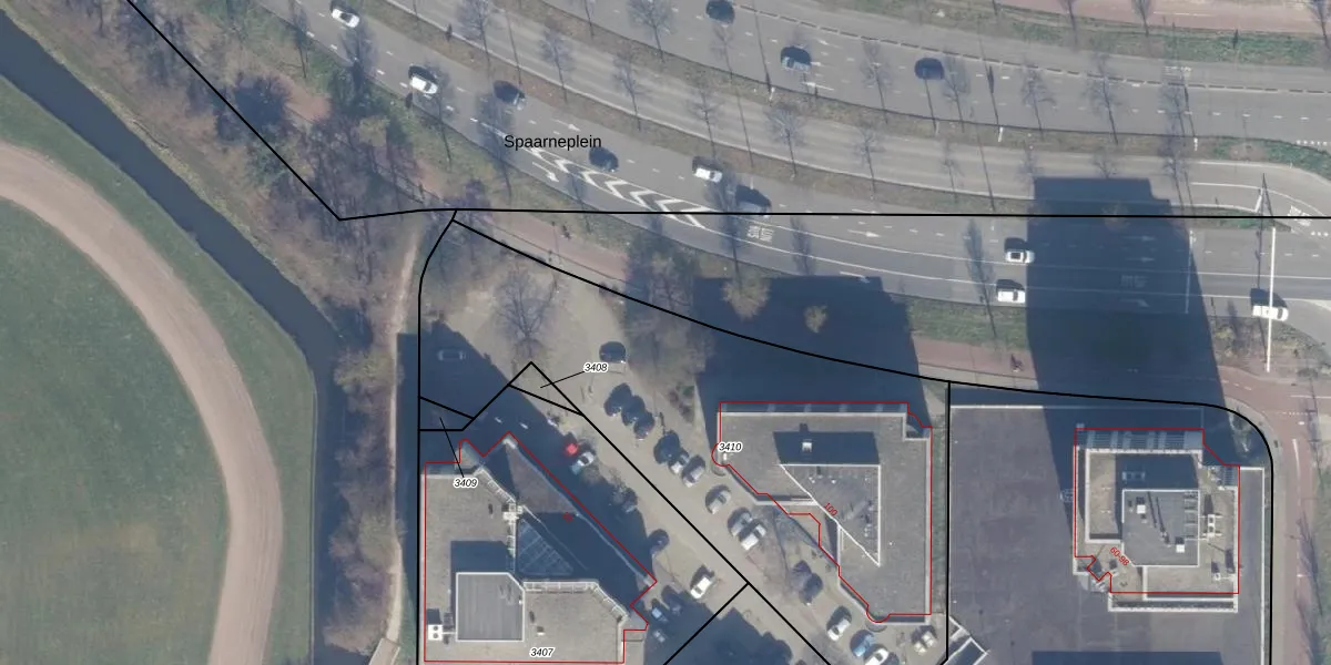 Het perceel waarop Spaarneplein 168 staat heeft een oppervlakte van 2609 m². Dit is een zeer groot perceel. De perceeloppervlakte wordt geregistreerd door het Kadaster. Gedetailleerde informatie over de maten van dit perceel kunt u vinden in het rapport Kadastrale kaart met maatvoering van Spaarneplein 168.
