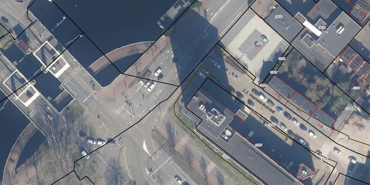 Het adres is gelegen op perceel 3226 in de sectie Q en de kadastrale gemeente Haarlem. De kadastrale aanduiding is aldus HLM02-Q-3226. Het perceel is 587 m² groot. Dat is kleiner dan de gemiddelde perceeloppervlakte in Haarlem, dat op 1125,45 m² ligt. De grootste perceeloppervlakte in de kadastrale gemeente is 46,4 ha. De kleinste oppervlakte bedraagt 0 m². Op het perceel zijn 34 adressen aanwezig. De huidige grenzen van het perceel zijn digitaal in de Basisregistratie Kadaster (BRK) geregistreerd op 20-12-2022.