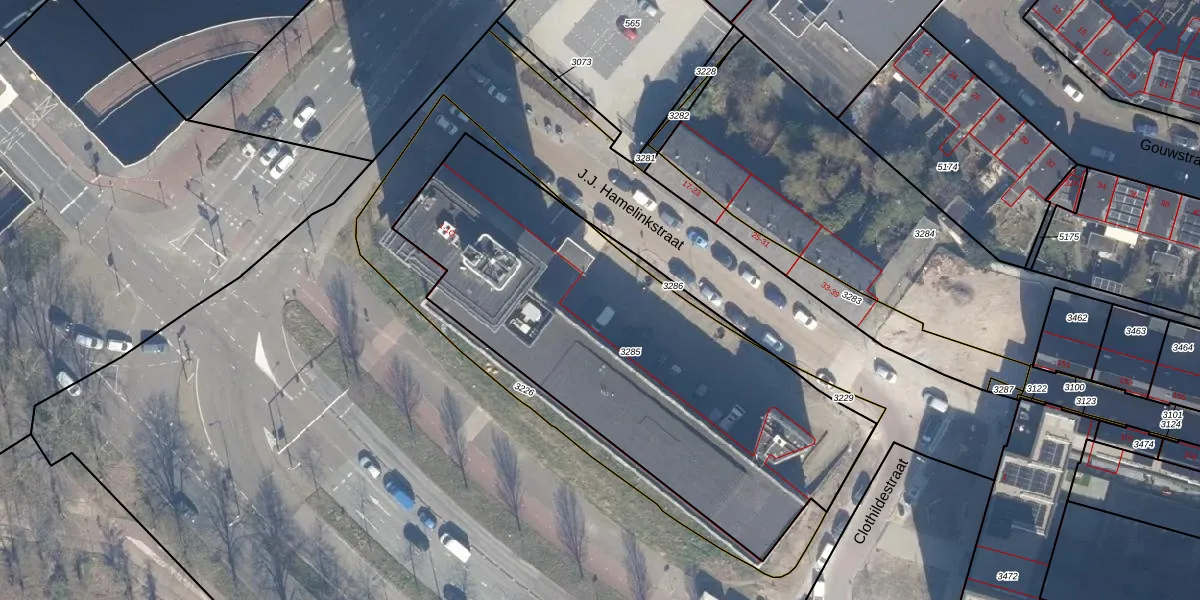 Het adres is gelegen op perceel 3285 in de sectie Q en de kadastrale gemeente Haarlem. De kadastrale aanduiding is aldus HLM02-Q-3285. De oppervlakte van het perceel is 2207 m². Dat is groter dan gemiddeld in Haarlem, waar de gemiddelde perceeloppervlakte op 1125,45 m² ligt. Het grootste perceel in de kadastrale gemeente is 46,4 ha. Het kleinste perceel heeft een oppervlakte van 0 m². Op het perceel liggen in totaal 191 adressen. De huidige grenzen van het perceel zijn digitaal in de Basisregistratie Kadaster (BRK) geregistreerd op 20-10-2023.