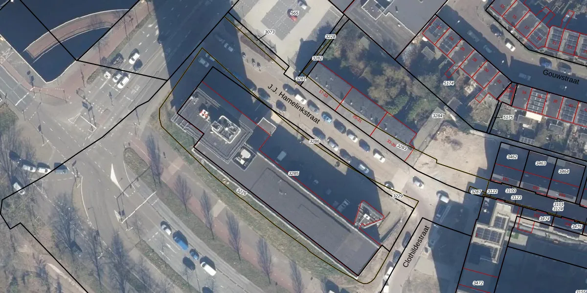 Het adres is gelegen op perceel 3285 in de sectie Q en de kadastrale gemeente Haarlem. De kadastrale aanduiding is aldus HLM02-Q-3285. De oppervlakte van het perceel is 2207 m². Dat is groter dan gemiddeld in Haarlem, waar de gemiddelde perceeloppervlakte op 1125,45 m² ligt. Het grootste perceel in de kadastrale gemeente is 46,4 ha. Het kleinste perceel heeft een oppervlakte van 0 m². Op het perceel liggen in totaal 191 adressen. In de Basisregistratie Kadaster (BRK) werden de grenzen van het perceel geregistreerd op 20-10-2023.