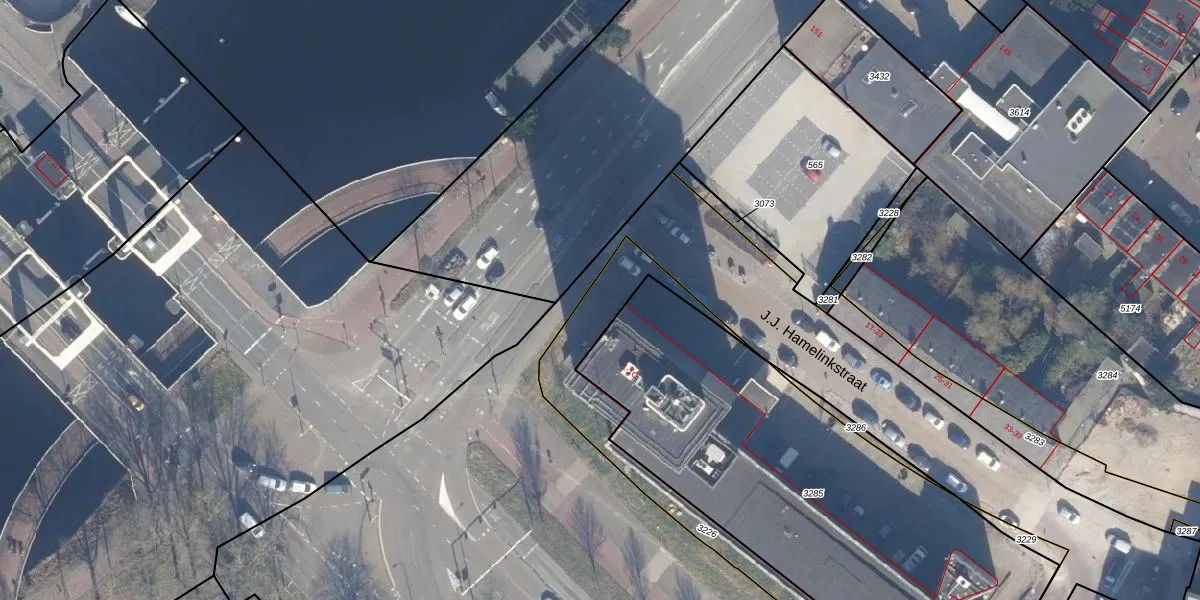 Het adres is gelegen op perceel 3226 in de sectie Q en de kadastrale gemeente Haarlem. De kadastrale aanduiding is aldus HLM02-Q-3226. Het perceel is 587 m² groot. Dat is kleiner dan de gemiddelde perceeloppervlakte in Haarlem, dat op 1125,45 m² ligt. De grootste perceeloppervlakte in de kadastrale gemeente is 46,4 ha. De kleinste oppervlakte bedraagt 0 m². Op het perceel liggen in totaal 34 adressen. In de Basisregistratie Kadaster (BRK) werden de grenzen van het perceel geregistreerd op 20-12-2022.