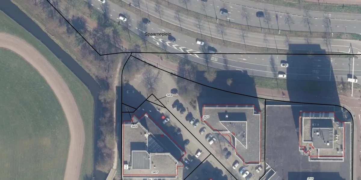 Het perceel waarop Spaarneplein 358 staat heeft een oppervlakte van 2609 m². Dit is een zeer groot perceel. De perceeloppervlakte wordt geregistreerd door het Kadaster. Gedetailleerde informatie over de maten van dit perceel kunt u vinden in het rapport Kadastrale kaart met maatvoering van Spaarneplein 358.