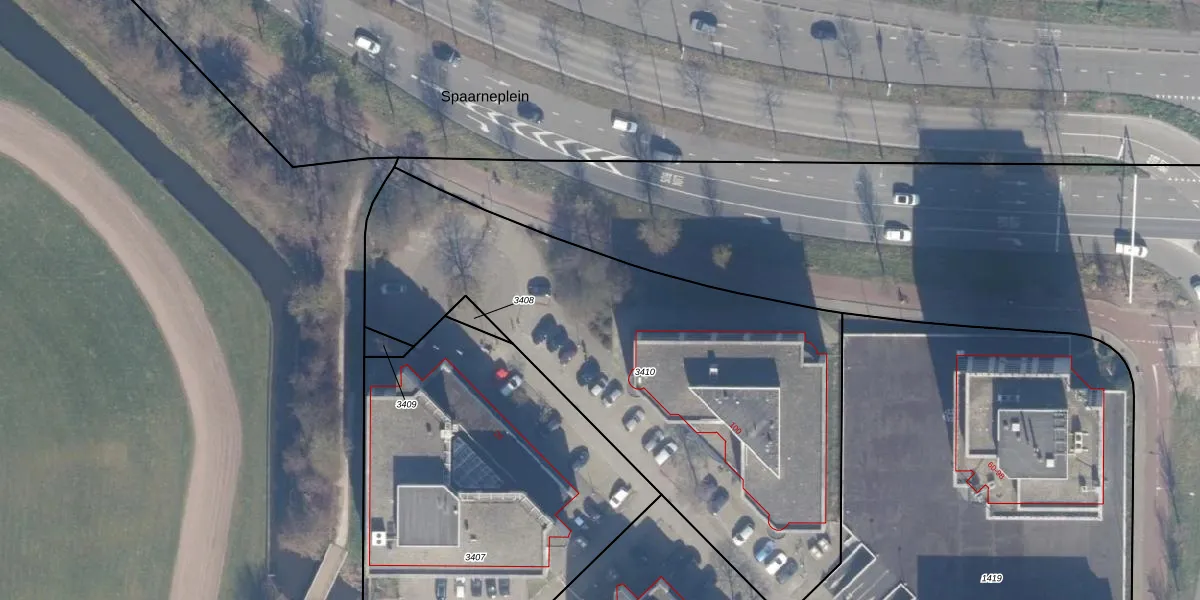 Het perceel waarop Spaarneplein 370 staat heeft een oppervlakte van 2609 m². Dit is een zeer groot perceel. De perceeloppervlakte wordt geregistreerd door het Kadaster. Gedetailleerde informatie over de maten van dit perceel kunt u vinden in het rapport Kadastrale kaart met maatvoering van Spaarneplein 370.