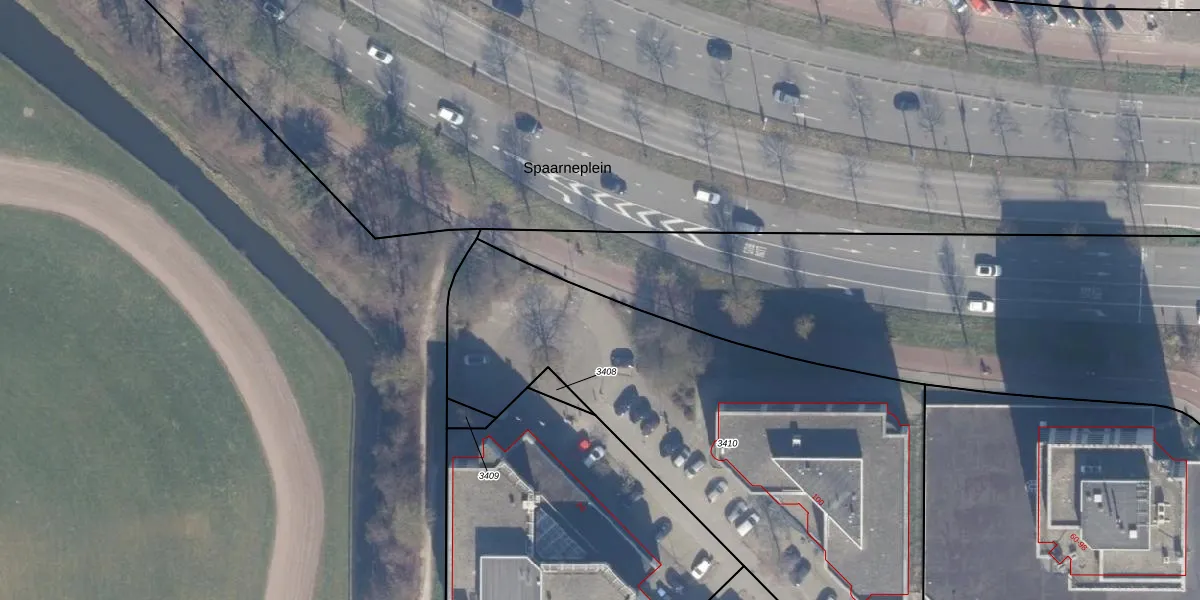 Het perceel waarop Spaarneplein 38 staat heeft een oppervlakte van 2609 m². Dit is een zeer groot perceel. De perceeloppervlakte wordt geregistreerd door het Kadaster. Gedetailleerde informatie over de maten van dit perceel kunt u vinden in het rapport Kadastrale kaart met maatvoering van Spaarneplein 38.