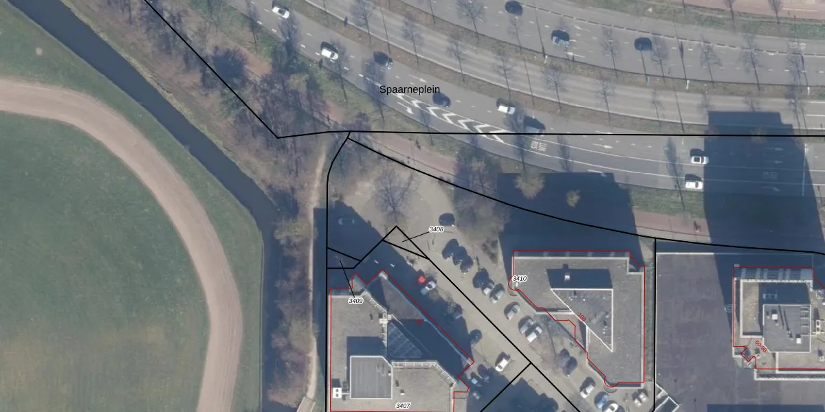 Het perceel waarop Spaarneplein 422 staat heeft een oppervlakte van 2609 m². Dit is een zeer groot perceel. De perceeloppervlakte wordt geregistreerd door het Kadaster. Gedetailleerde informatie over de maten van dit perceel kunt u vinden in het rapport Kadastrale kaart met maatvoering van Spaarneplein 422.