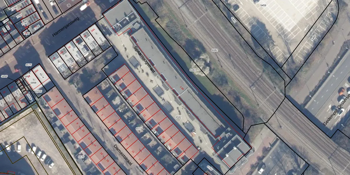 Het adres ligt op het perceel HLM01-E-6591, dat zich in de kadastrale gemeente Haarlem bevindt. De oppervlakte van het perceel is 3740 m². Dat is groter dan gemiddeld in Haarlem, waar de gemiddelde perceeloppervlakte op 328,33 m² ligt. De grootste perceeloppervlakte in de kadastrale gemeente is 13,9 ha. De kleinste oppervlakte bedraagt 0 m². Op het perceel liggen in totaal 55 adressen. De laatste wijziging in het de Basisregistratie Kadaster (BRK) was op 29-04-2008.