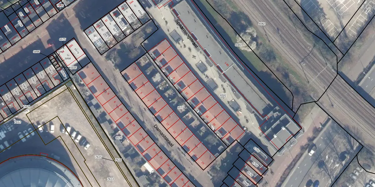 Het adres ligt op het perceel HLM01-E-6591, dat zich in de kadastrale gemeente Haarlem bevindt. De oppervlakte van het perceel is 3740 m². Dat is groter dan gemiddeld in Haarlem, waar de gemiddelde perceeloppervlakte op 328,33 m² ligt. De grootste perceeloppervlakte in de kadastrale gemeente is 13,9 ha. De kleinste oppervlakte bedraagt 0 m². Op het perceel liggen in totaal 55 adressen. In de Basisregistratie Kadaster (BRK) werden de grenzen van het perceel geregistreerd op 29-04-2008.